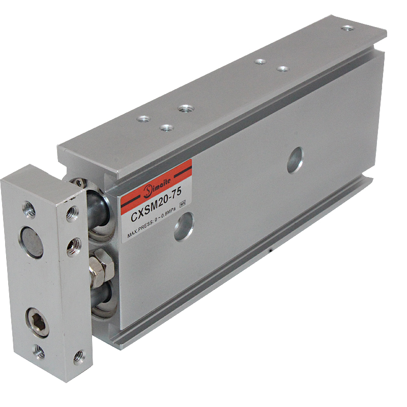 CXSM雙軸氣缸埋入式本體安裝固定形式,節(jié)省安裝空間;具有一定的抗彎曲及抗扭轉(zhuǎn)性能,能承受一定的側(cè)向負(fù)載;固定板三面均有安裝孔,便于多位置加載;本體前端防撞墊可調(diào)整氣缸行程,并緩解沖擊。