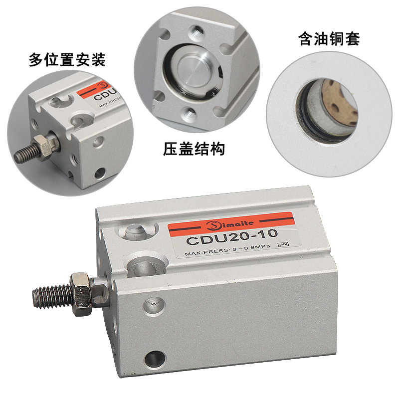 4、CDU系列氣缸,使用壽命長,氣動氣壓低,可以多個(gè)氣缸并在一起固定,有效節(jié)省安裝空間。