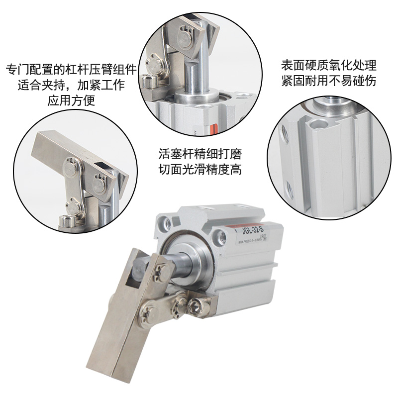 3、杠桿氣缸缸體表面采用硬質氧化處理,緊固耐用不易碰傷。