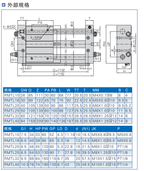 標(biāo)準(zhǔn)氣缸結(jié)構(gòu)型號(hào)尺寸圖